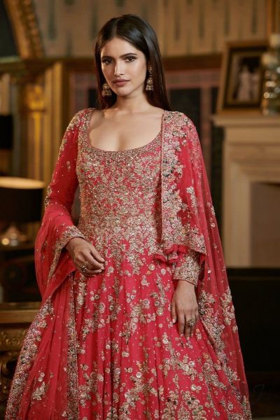 Styled with a fully embroidered tulle dupatta