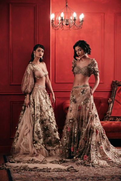 GOLD EMBELLISHED TULLE LEHENGA SET