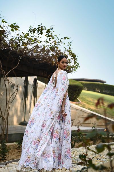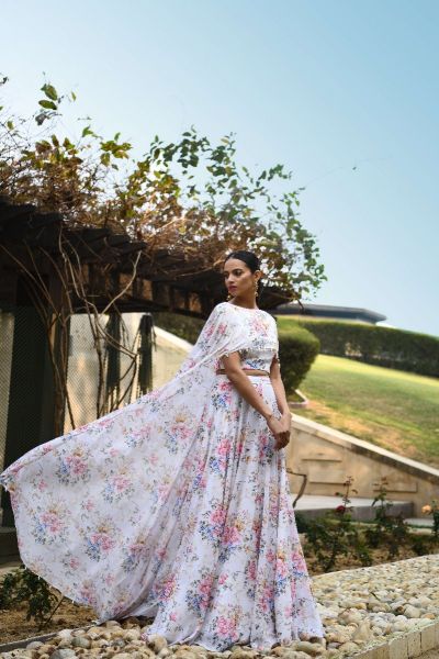 IVORY PRINTED CAPE LEHNGA SET