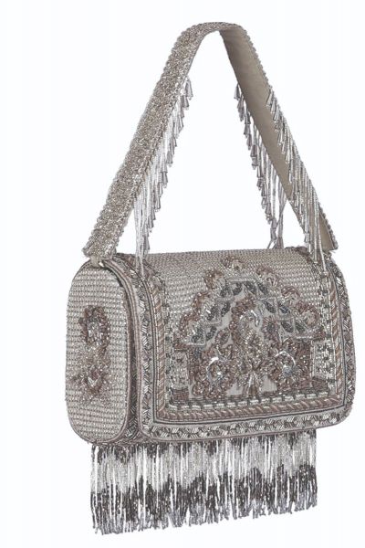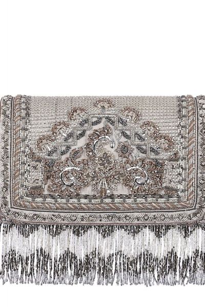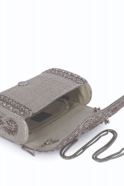 KALEEN FLAPOVER CLUTCH SILVER WITH HANDLE