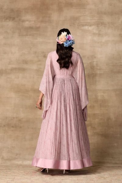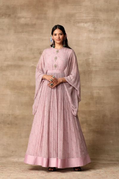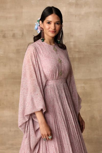Ridhi Mehra creates a statement-making anarkali with paisley print and statement sleeves. An embellished clutch completes the look.