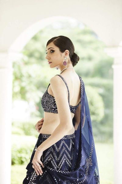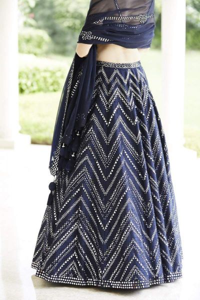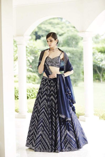 NAVY BLUE MIRROR WORK LEHENGA SET