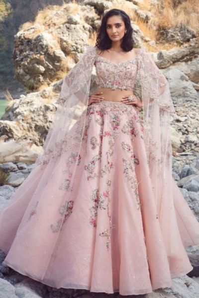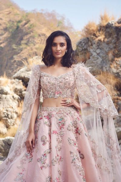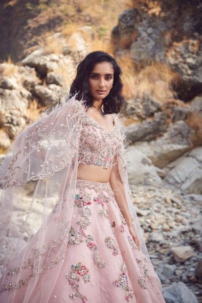 Organza Lehenga in Blush Pink with Dori and Zardozi embroidery
