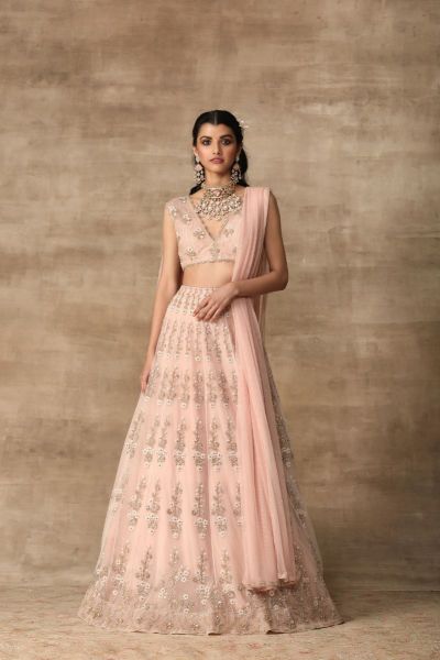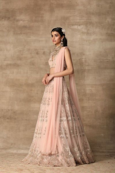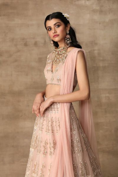 PEACHY PINK EMBROIDERED LEHENGA SET