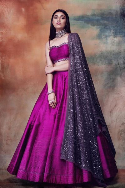 PINKISH PURPLE SEQUINED DUPATTA LEHENGA SET