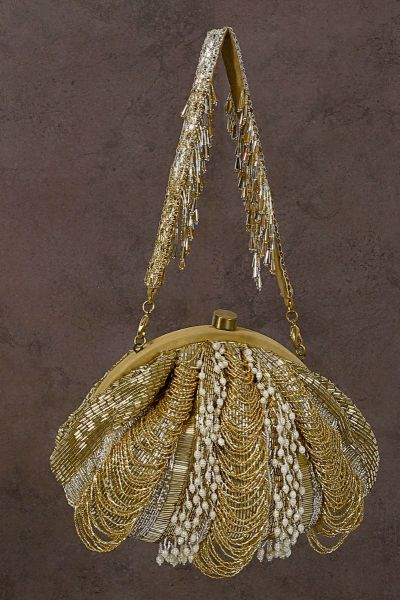 RUCHE SOFT POUCH GOLD SILVER WITH HANDLE