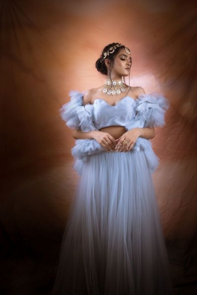 BLUEBERRY GRAY TULLE LEHENGA