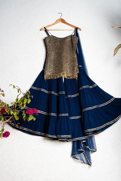 MIDNIGHT BLUE AND GOLD SPAGHETTI SHARARA SETPATTA