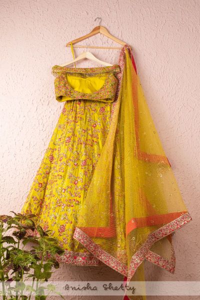 CITRINE YELLOW FLORAL BRIDAL LEHENGA SET