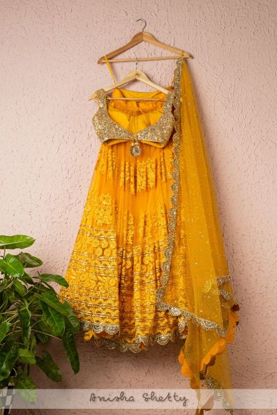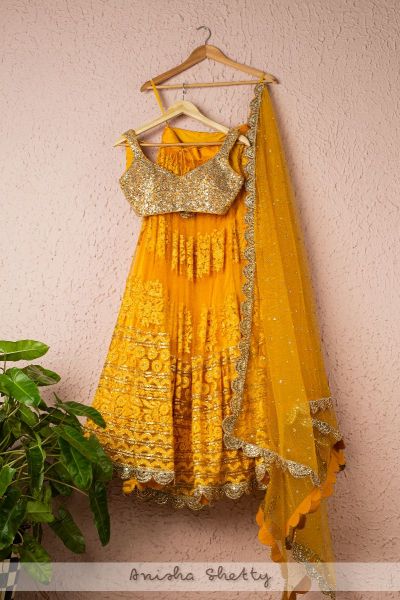 CLASSIC YELLOW EMBROIDERED THREADWORK LEHENGA WITH ABLA & SEQUENCE BLOUSE