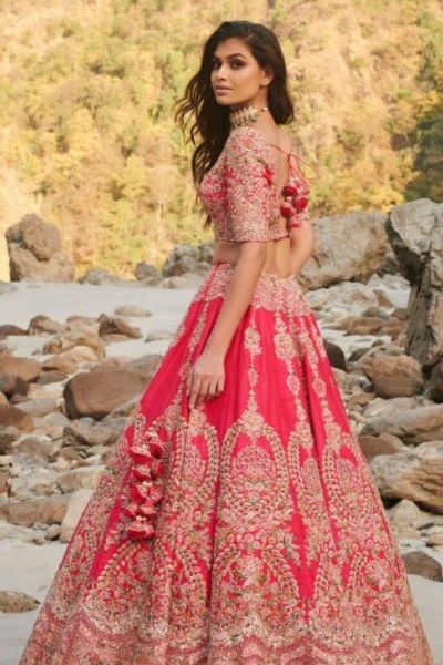Bridal Lehenga Set in Fuchsia Raw Silk with Resham-Zardozi Embroidery