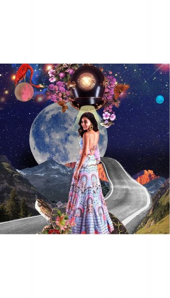 A millennial blue tulle doorway lehenga embroidered with sequins, beads and roses paired with blue butterfly sequin blouse and a matching asymmetrical sequin and heart dupatta.