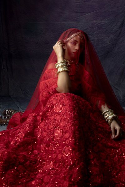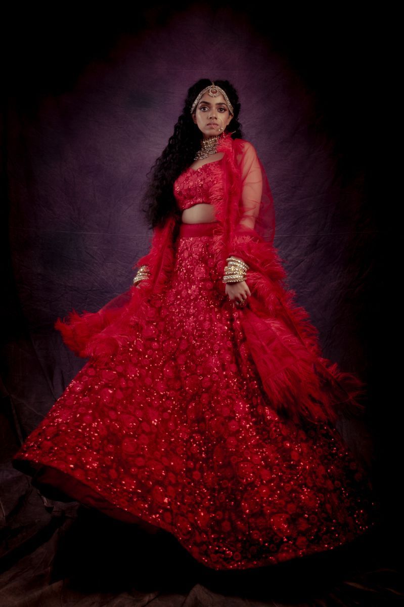 FIERY RED EMBROIDERED BRIDAL LEHENGA SET