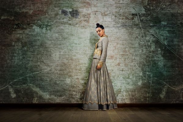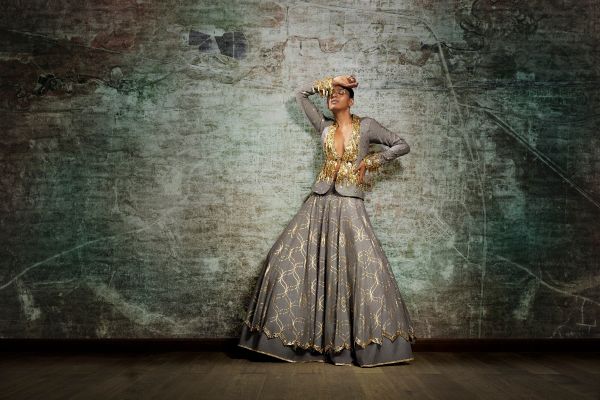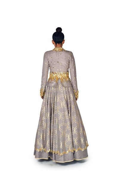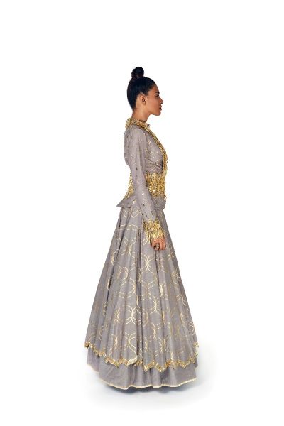 GREY EMBELLISHED JACKET AND LEHENGA SET