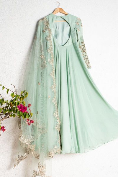 HIMALAYAN MINT GREEN ANARKALI WITH SCALLOP EMBROIDERED DUPATTA