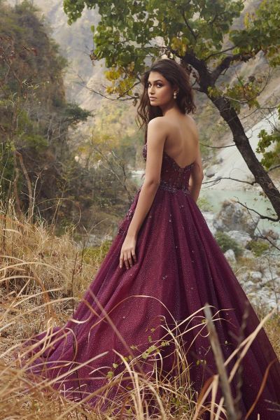 A beautiful Shimmer Tulle gown with french sequins 3D embroidery. Perfect for evening events.