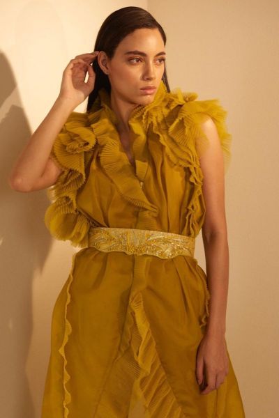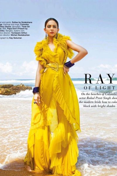 Rakul Preet looks stunning in Yellow jacket and pant set by Sulakshana Monga.