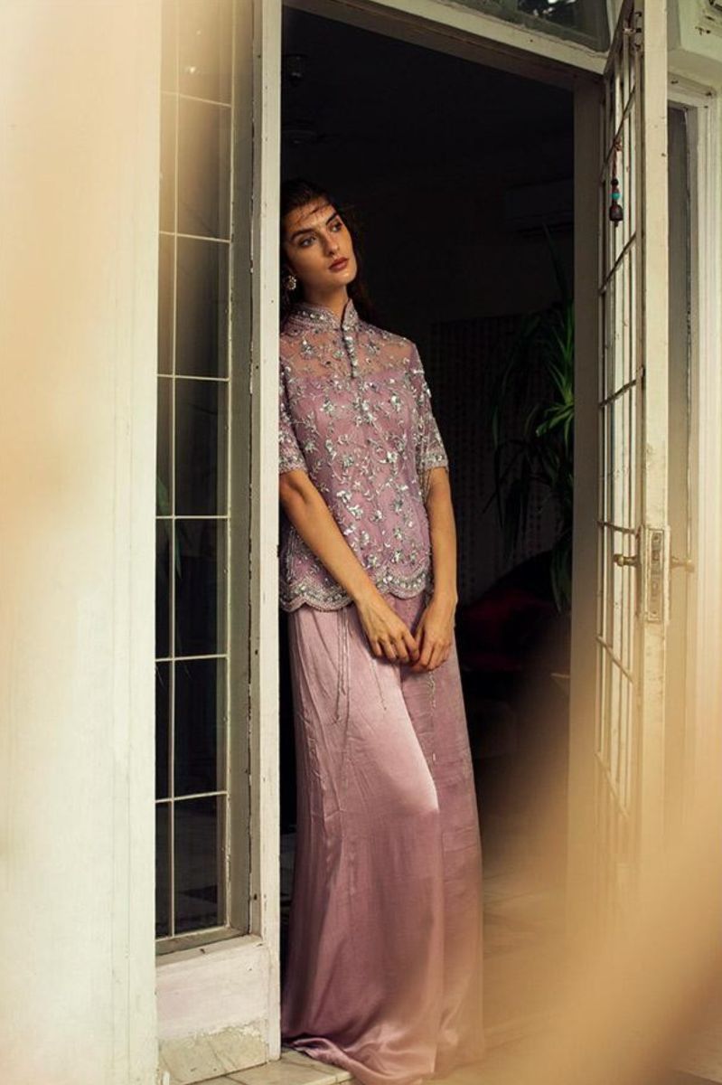 LILAC EMBELLISHED JACKET WITH PALAZZO PANTS