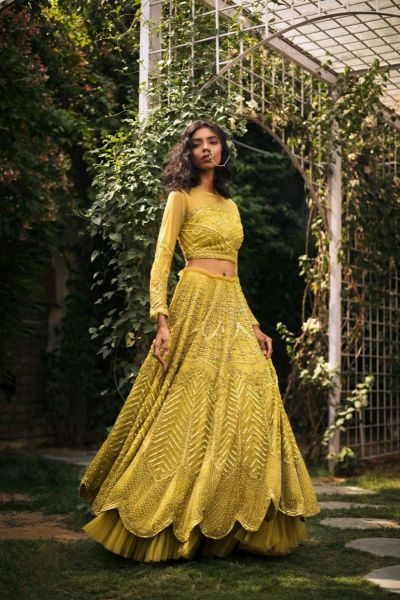 A beautiful green lehenga. Perfect for those women who love to slay it fashionably even while donning the most traditional Indian attire.