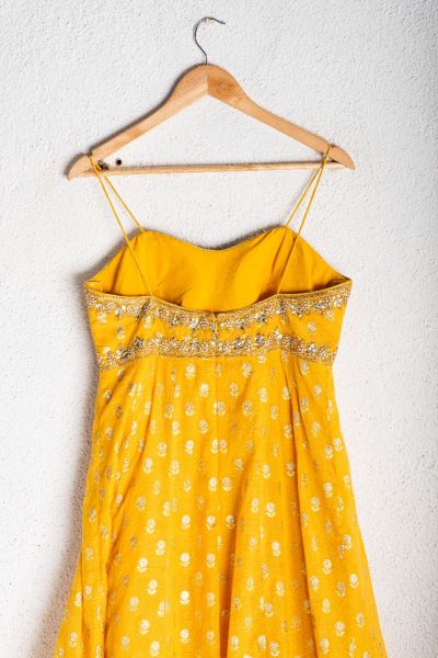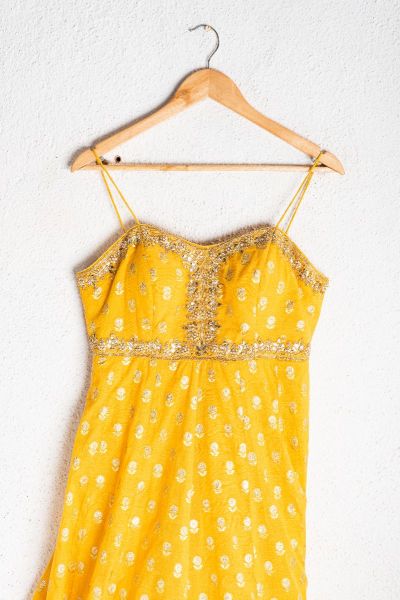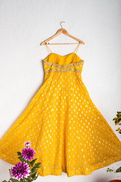 MANGO YELLOW CHANDERI SILK GOTA EMBROIDERED ANKLE LENGTH DRESS