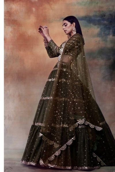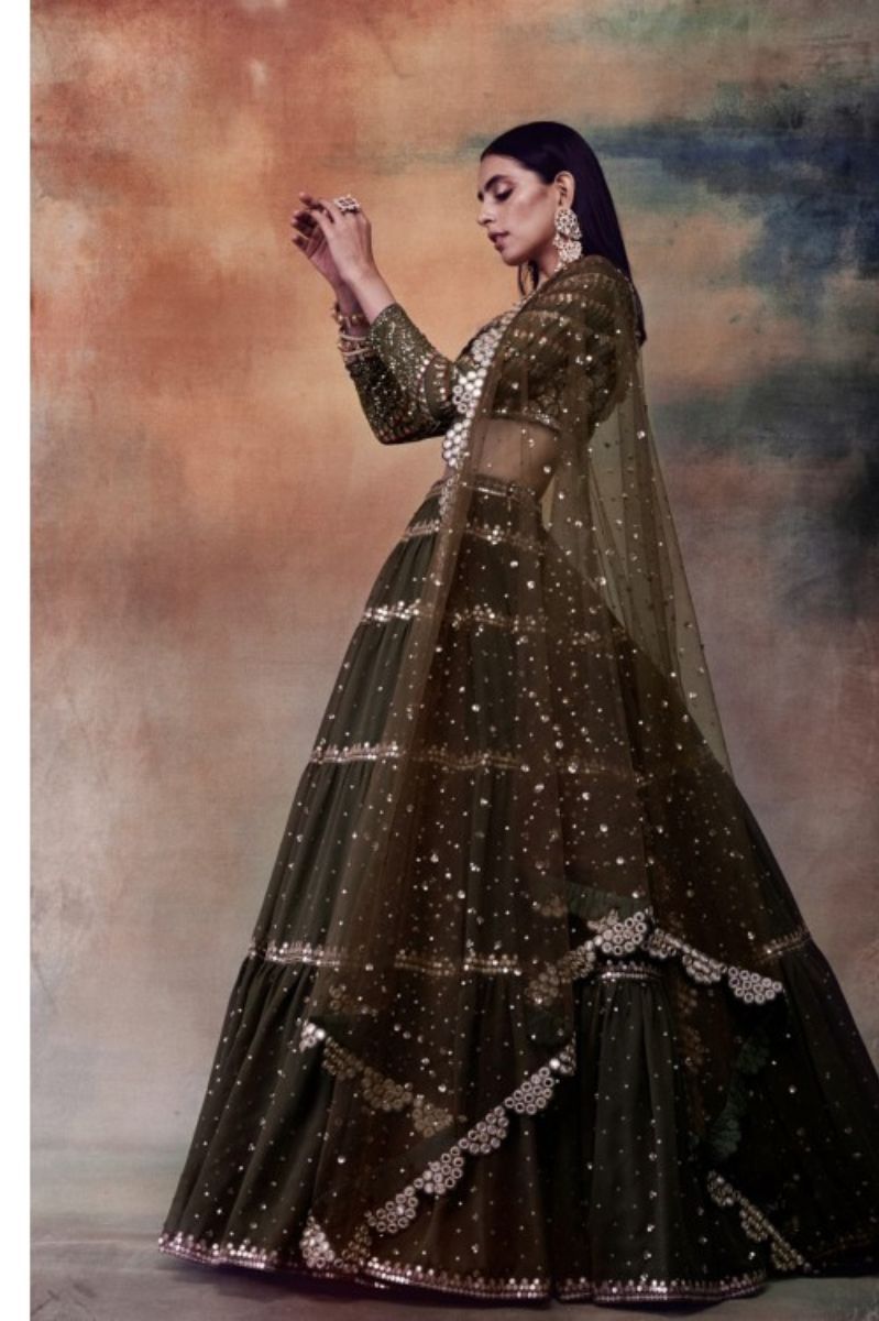 OLIVE GREEN TIER LEHENGA SET