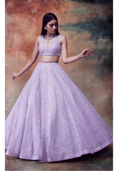 POWDER LILAC SEQUINED LEHENGA SET