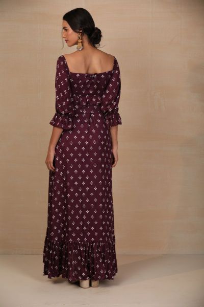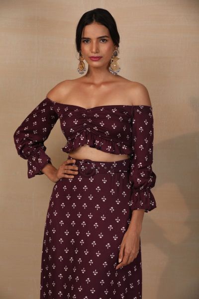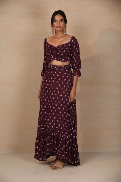 PURPLE PRINTED CROP TOP AND SKIRT SET