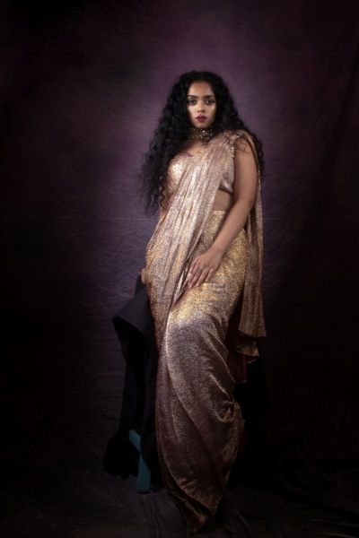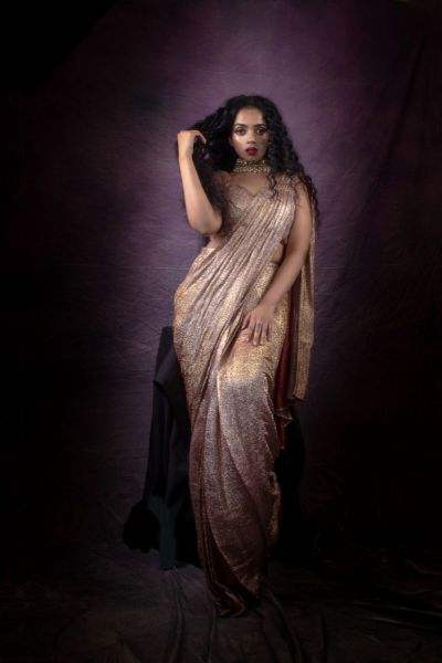 SHIMMER MAROON & GOLD PRESTITCHED SAREE
