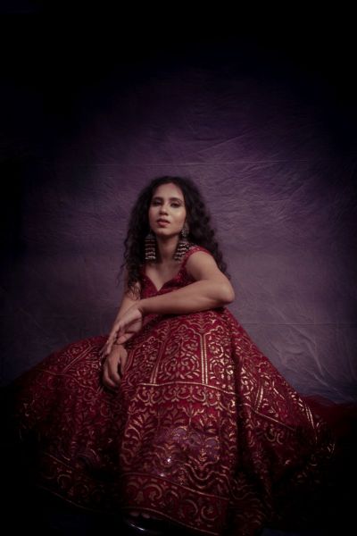 A dazlling Red net lehenga with embriodery work with Blouse Embroidery and Sequence & Cutdana.