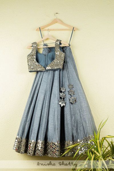 TINGED BLUE SHIMMER MIRROR WORK LEHENGA SET